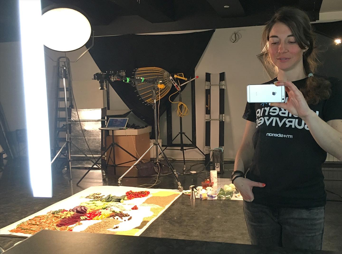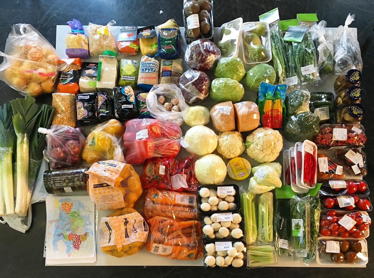 Потребовалось несколько часов (примерно 8) на сборку самой карты из продуктов и час на съемку/доработку деталей. Процесс сборки и разборки картинки можно посмотреть на видео в карусели.