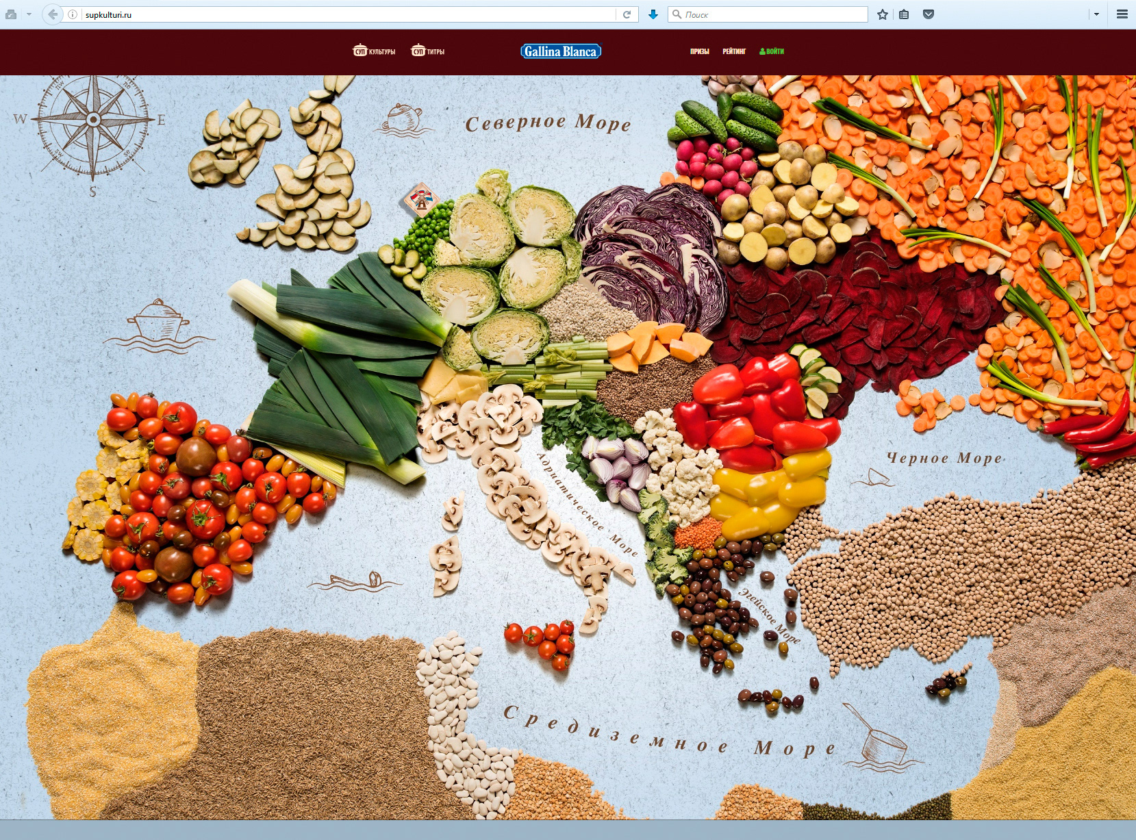 Карта Европы для бренда "Gallina Blanca" из овощей и круп для сайта SupKulturi.ru